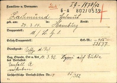-Συγκυβερνήτης, Υπαξιωματικός Helmut Lachmund από το Αμβούργο, γεννηθείς στις 24.03.1914.