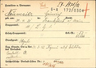 -Χειριστής οπλικών συστημάτων, Υπαξιωματικός Heinrich Neumaier από την Φρανκφούρτη, γεννηθείς στις 30.04.1921.