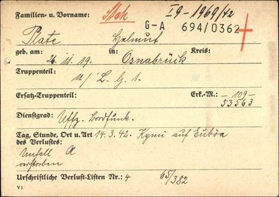 -Ραδιοναυτίλος- Μηχανικός πτήσεως, Υπαξιωματικός Helmut Plate από το Osnabrück, γεννηθείς στις 26.11.1919.
