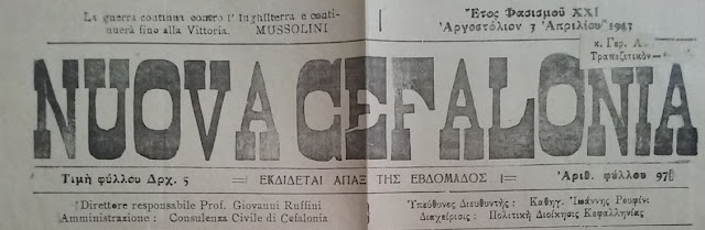 As demonstrated in this rare and unique fascist newspaper published in Kefalonia (dated 3 April 1943), the Italian authorities threatened with death whoever helped the partisans in guerrilla actions and informed the people of Kefalonia that their villages would be blown to pieces.