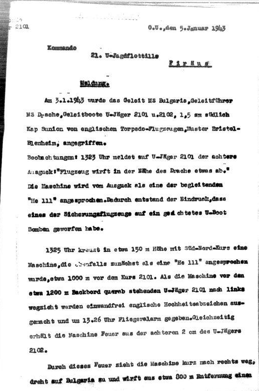 The first attack, which is reported in the War Diary of 21 U_Jägerflottille, relates to the aerial bombing of the Axis ships “BULGARIA” and “DRACHE” close to Sounion, on January 3rd, 1943. This is most probably the air raid that left the unexploded bombs at the seafloor for over 70 years!
