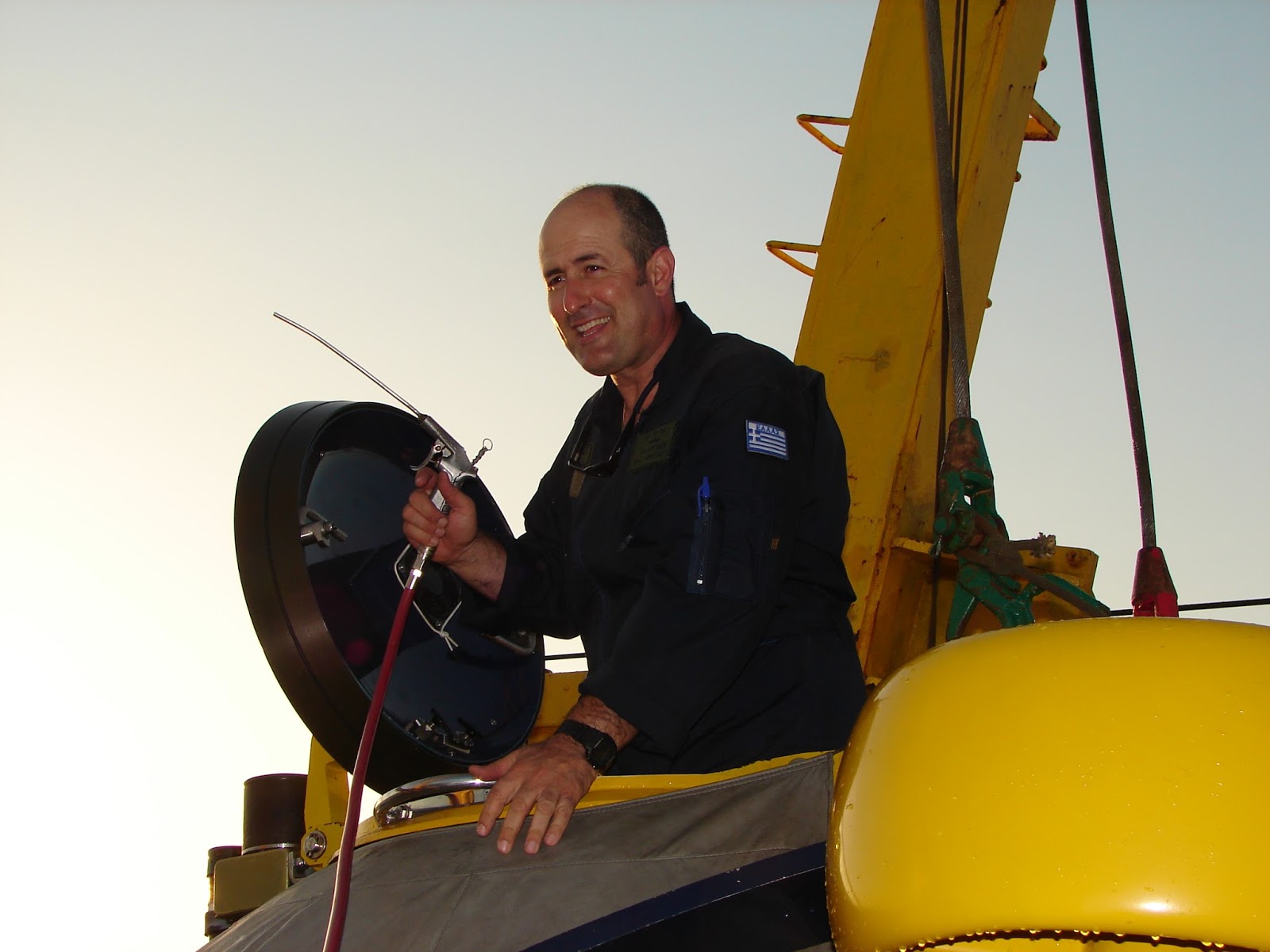 | Commander Kostas Katsaros with “Thetis” (PHOTO CREDIT: Kostas Katsaros) |