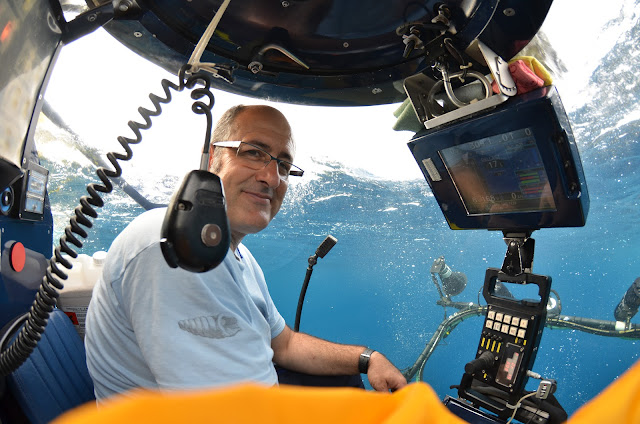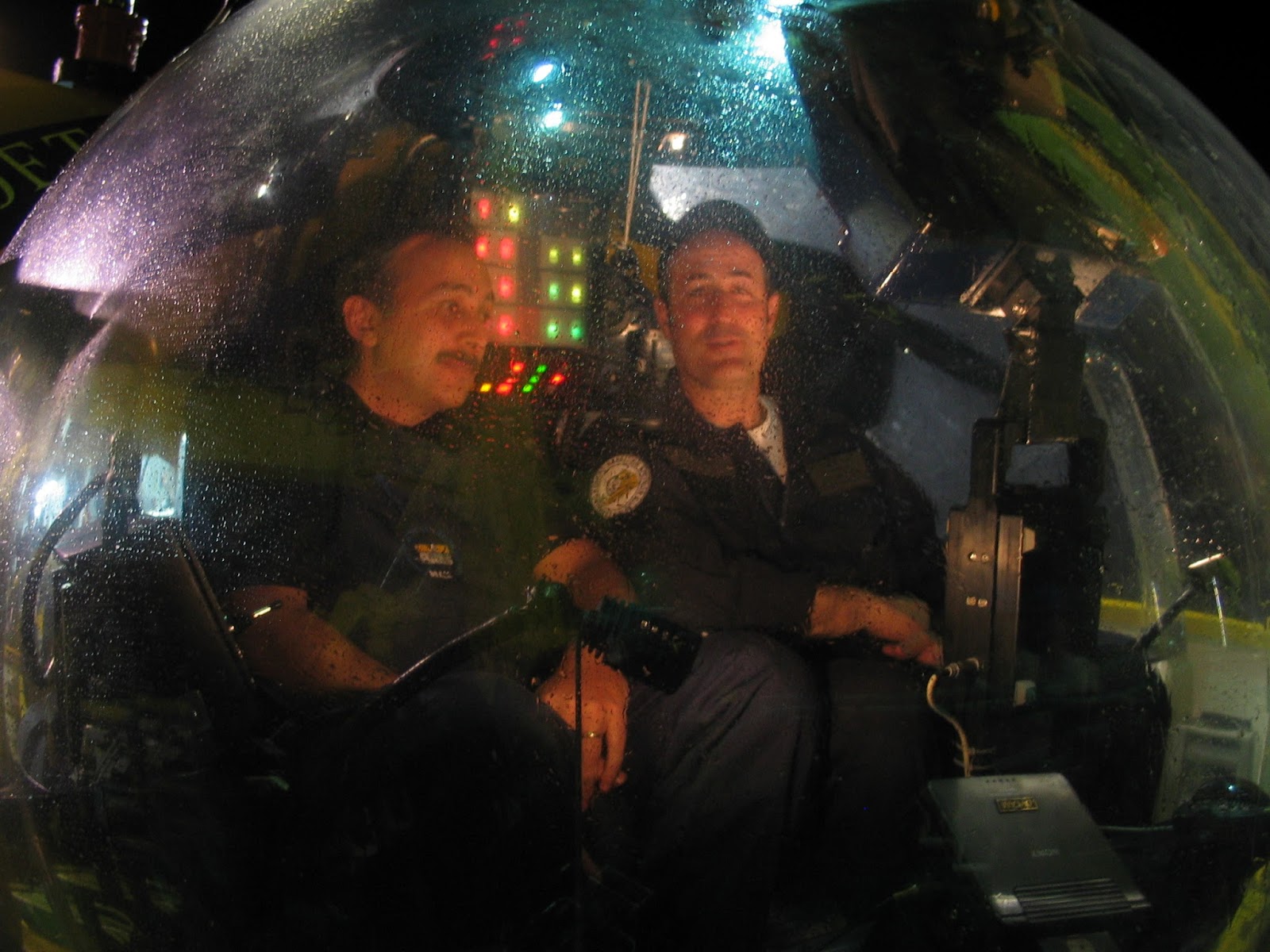 | Submersible Commander Kostas Katsaros with HCMR colleague Leonidas Manoussakis |