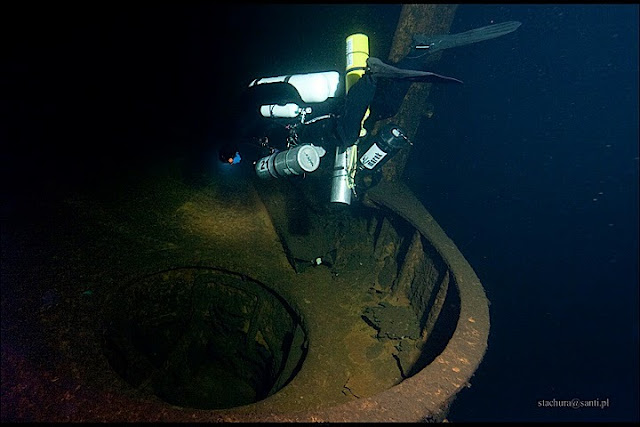 A diving team from Poland, including experienced scuba divers Dimitris “Dima” Stavrakakis and acclaimed underwater photographer Tomasz “Tomek” Stachura share withpierrekosmidis.blogspot.com their experience and stunning underwater photos of a unique WW2 Wreck, the only German aircraft carrier that was never meant to see active duty.