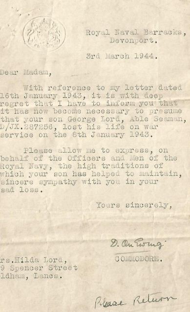 George Lord was born in 1921, the second child of James and Hilda Lord.