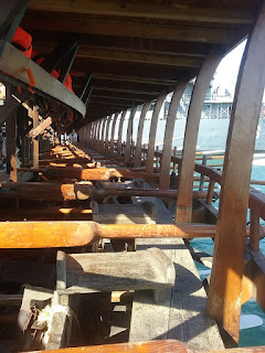 A series of six sea-trials between 1987 and 1994 demonstrated that the ship could be rowed efficiently and fast, despite almost universal academic opinion that a three-level arrangement of oars was wholly impracticable. A full-scale, sit-on model of the reconstructed oar system was featured in the Transport section of the Millennium Dome exhibition in 2000, and similar models are currently on display in both the Henley River and Rowing Museum and the Manchester University Museum.