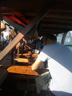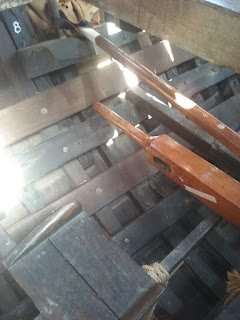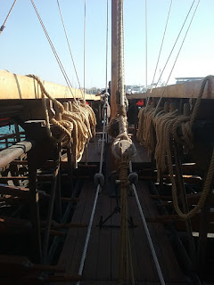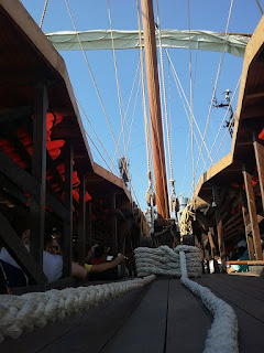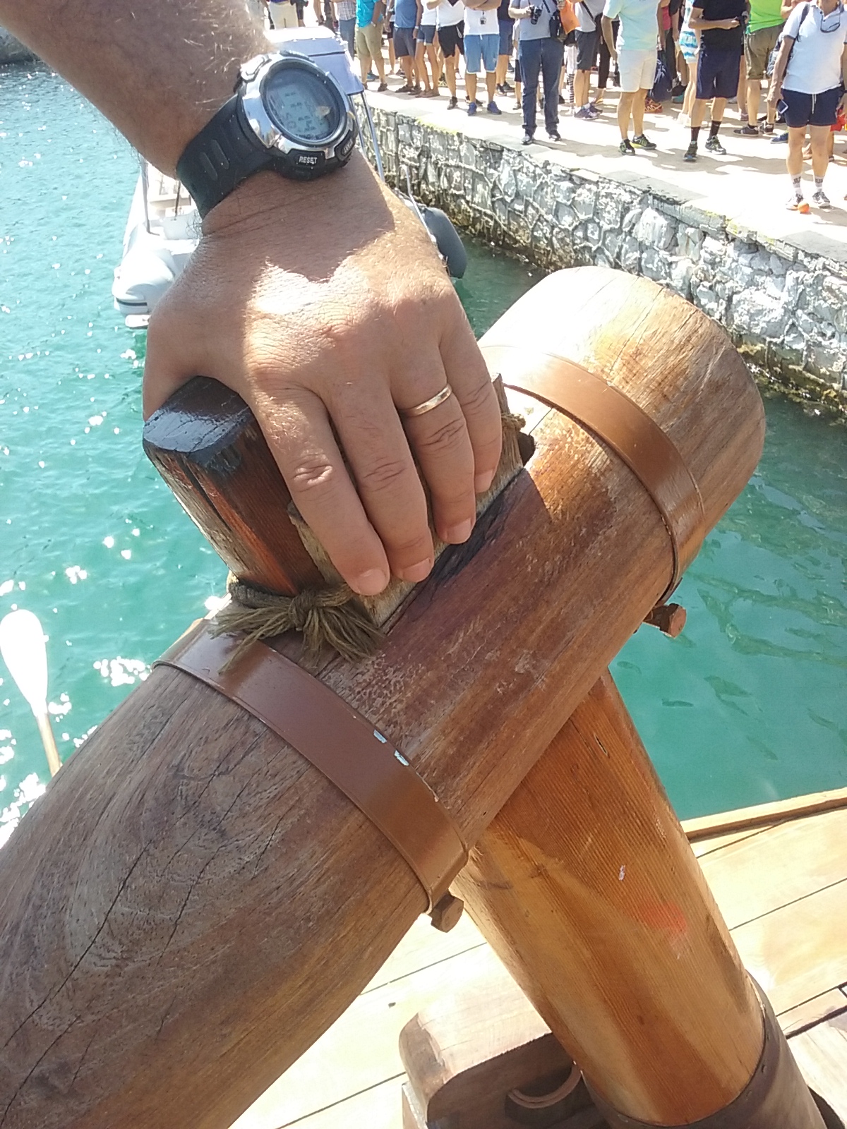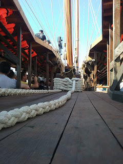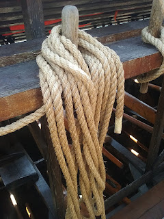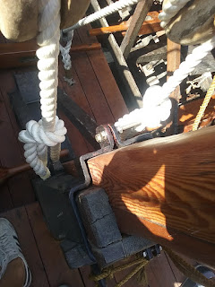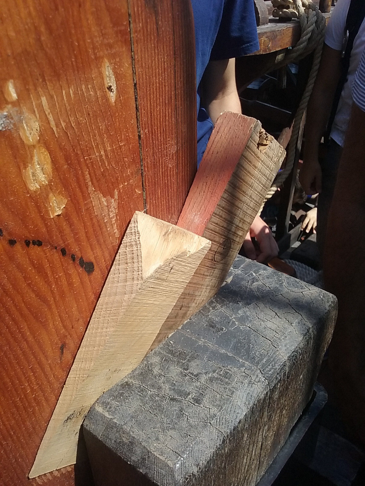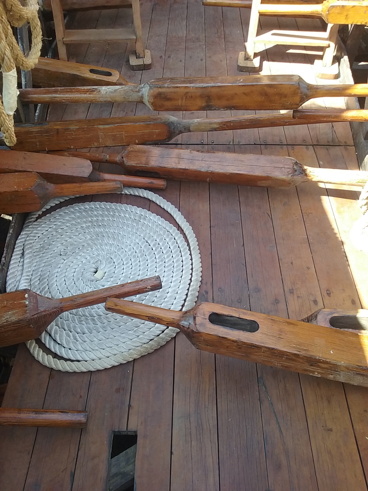 The important hypozomata (bracing ropes) had to be replaced by a steel rope because no natural fibre or synthetic fibre ropes with about the same elastic modulus as hemp could be obtained.