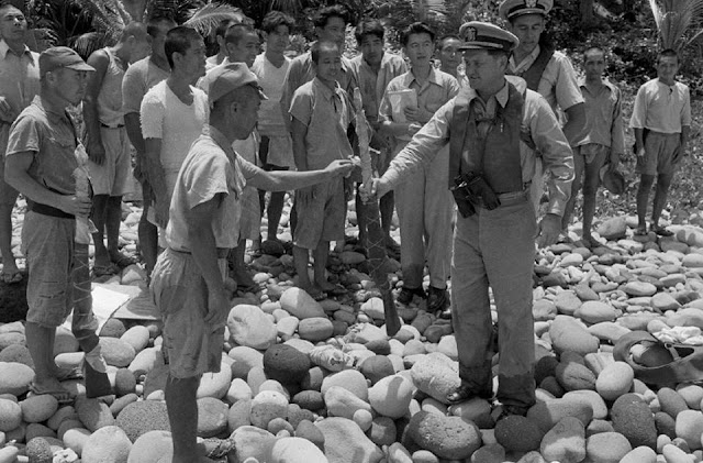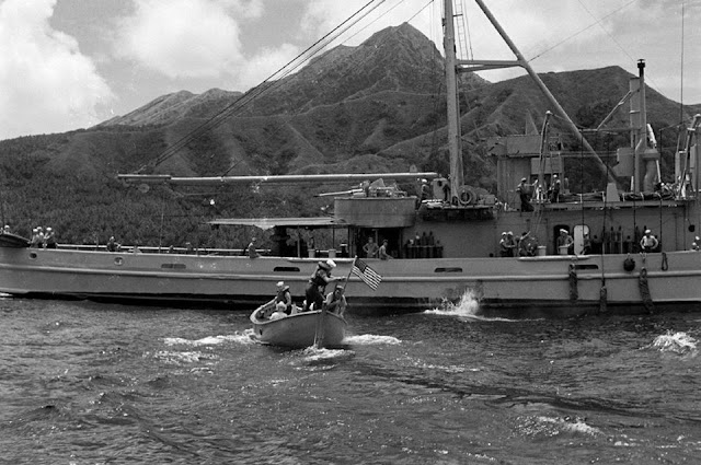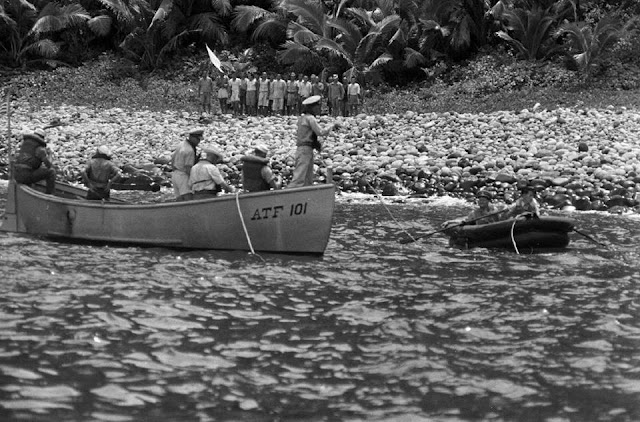 Thus, six years after the end of World War II, “Operation Removal” got underway from Saipan under the Command of James B. Johnson, USNR, aboard the Navy Tug USS Cocopa. Lt. Commander James B. Johnson and Mr. Ken Akatani, an interpreter, went ashore by rubber boat and formally accepted the last surrender of World War II on the morning of June 30, 1951 which also coincided with the last day of the Naval Administration of the Trust Territory of the Pacific Islands.
