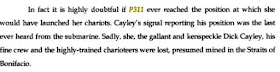 “The Board of Admiralty regrets to announce the loss of submarine P311 (Commander Richard Douglas Cayley DSO RN) is overdue and must be presumed lost. The next-of-kin have been informed.