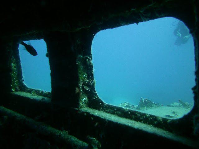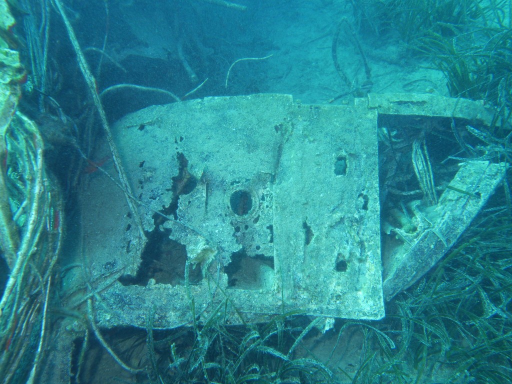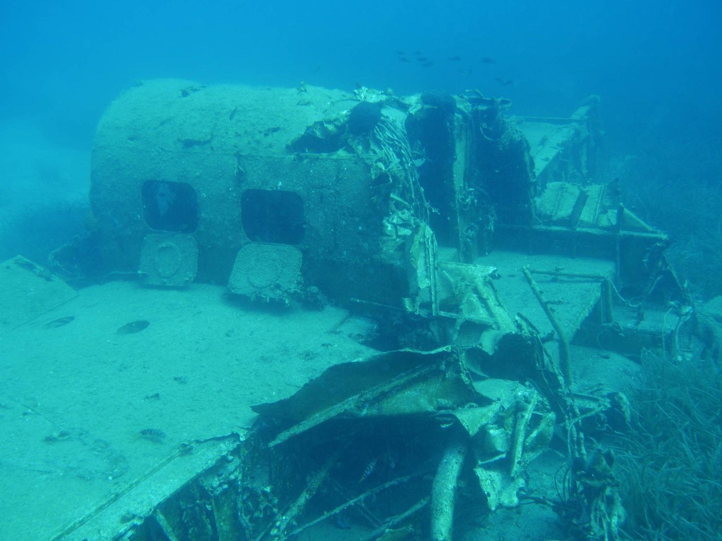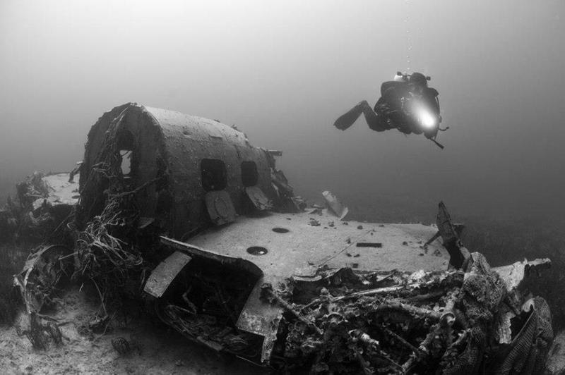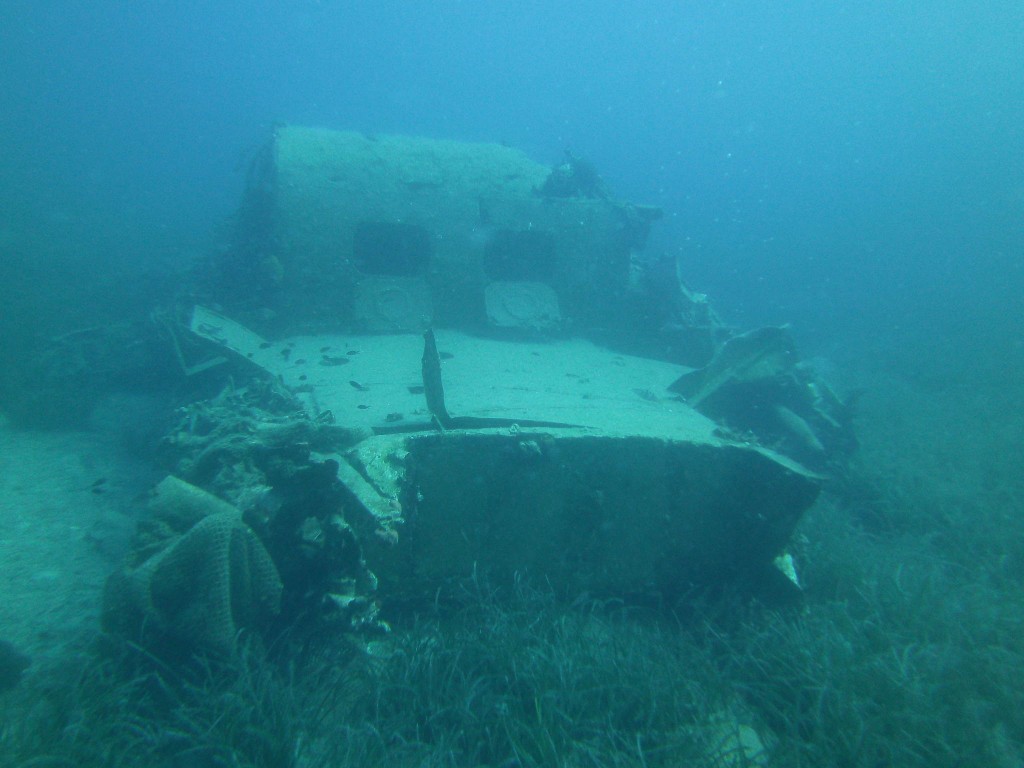 | Part of the He111 still remains at a depth of 16 metres and is a popular diving site in Leros. Photo Credit: http://is-expl.com/explorations/12 |