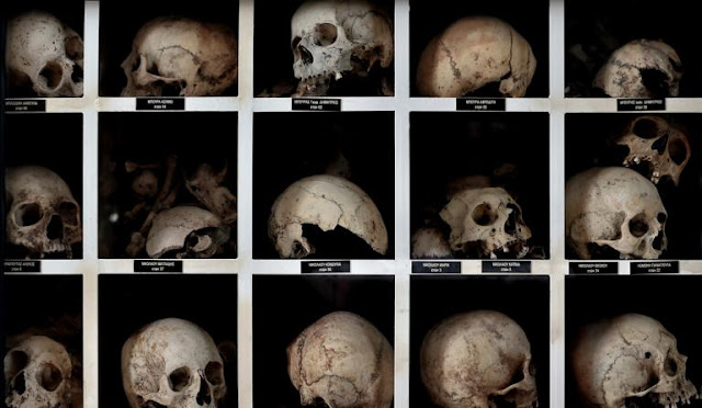 This particular massacre has been studied by historians in some detail, because there were survivors who managed to escape by swimming the fast waters of Arahthos river, or by hiding in the forested area bordering the village. In Kommeno, the Germans murdered 145 men, 174 women and 97 children, 414 in all.