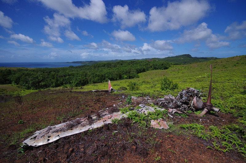 The charred remains of a Japanese Zero fighter were on a mountain slope in Palau, covered by grass. The aircraft turned out to belong to the 261 Navy Air Corps, piloted by 19-year old Yoshida Hisamitsu.